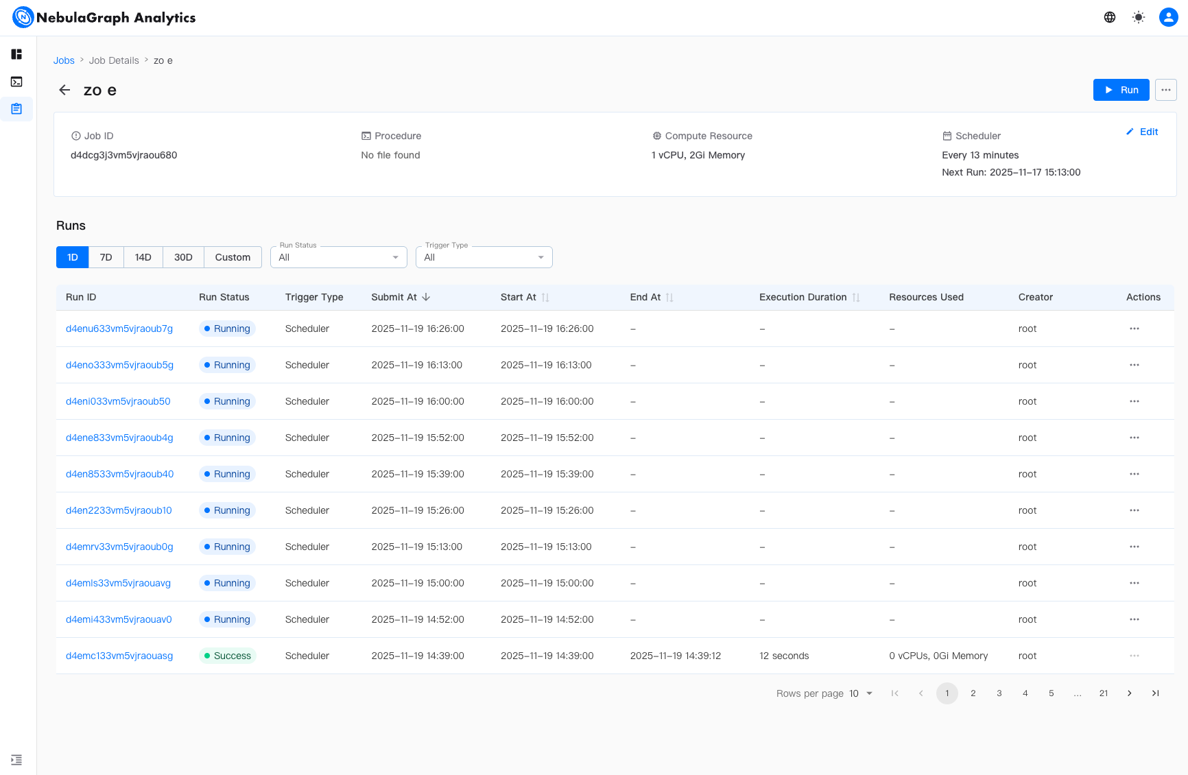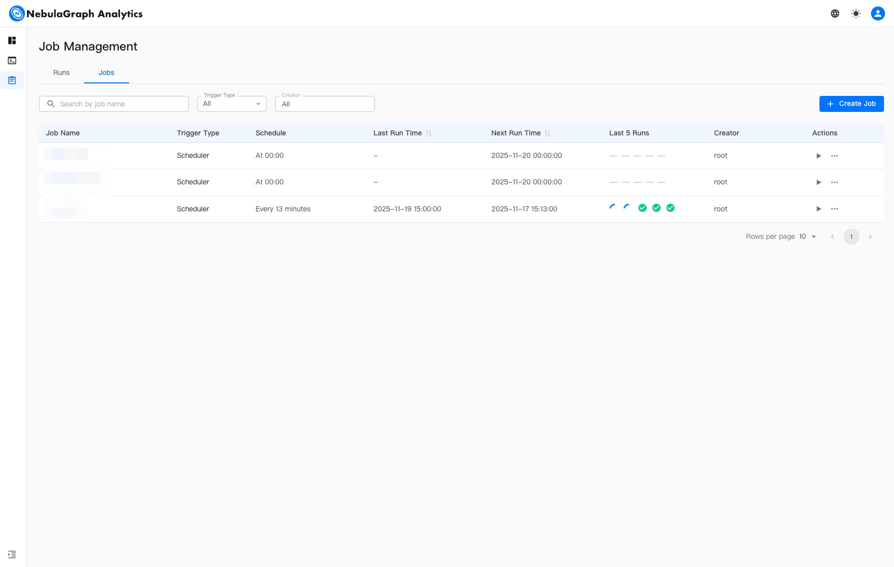 NebulaGraph Analytics 提供可视化作业管理能力,用于: